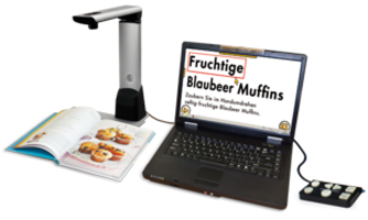 Das Kamerasystem VOXviva wird an einen Windows-PC bzw. -Laptop angeschlossen (ab Windows XP bis Windows 10) und stellt gescannte Vorlagen bis zu 66fach vergrößert dar (bei einer Monitorgröße von 24 Zoll). Dabei können zahlreiche Anzeigearten und Farbdarstellungen eingestellt werden. VOXviva verfügt zudem über eine Vorlesefunktion. Navigiert werden kann seiten-, absatz-, satz- und wortweise. Die Bedienung über eine separate Bedieneinheit ist einfach. Es stehen 15 Sprachen mit 30 Stimmen (zwei deutsche Stimmen) zur Verfügung.Kameraystem mit Vorlesefunktion.