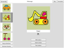 Diese Memory-App kann entweder durch Berührung oder durch einen (separat zu erwerbenden) angeschlossenen Taster bedient werden, und ist somit auch für Menschen mit Körperbehinderung zugänglich. Es kann in 3 verschiedenen Modi gespielt werden: mit offenen Karten, mit verdeckten Karten und mit verdeckten Karten gegen die Zeit. Eine Karte kann aus Bild, Ton und Text bestehen, so lässt sich also neben der klassischen Bild-Bild-Zuordnung eine Bild-Ton-Zuordnung oder Text-Ton-Zuordnung einstellen. Mit dem Editor lassen sich einfach neue Kartensets erstellen. Erhältlich bei iTunes.Tasterbedienbare Memory-App.